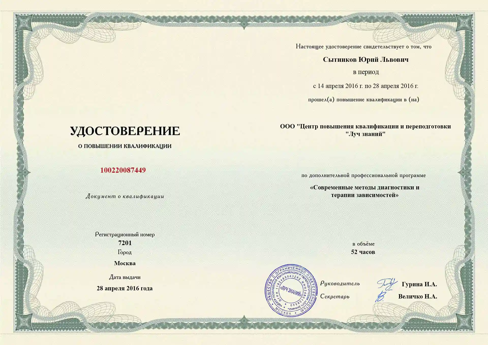 Я хотел бы поблагодарить доктора Юрия Сытникова за его профессионализм и доброе отношение. Он помог мне вернуться к здоровой жизни.
